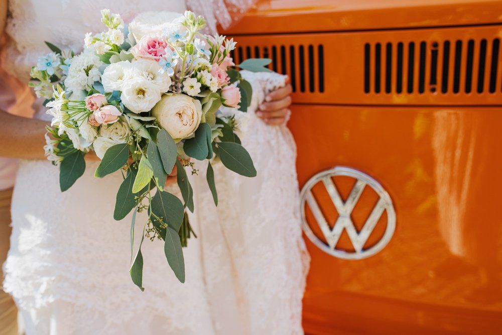 Die wohl wichtigsten Blumen am Hochzeitstag sind die der Braut. Hier einmal ganz sommerlich im vintage Stil.